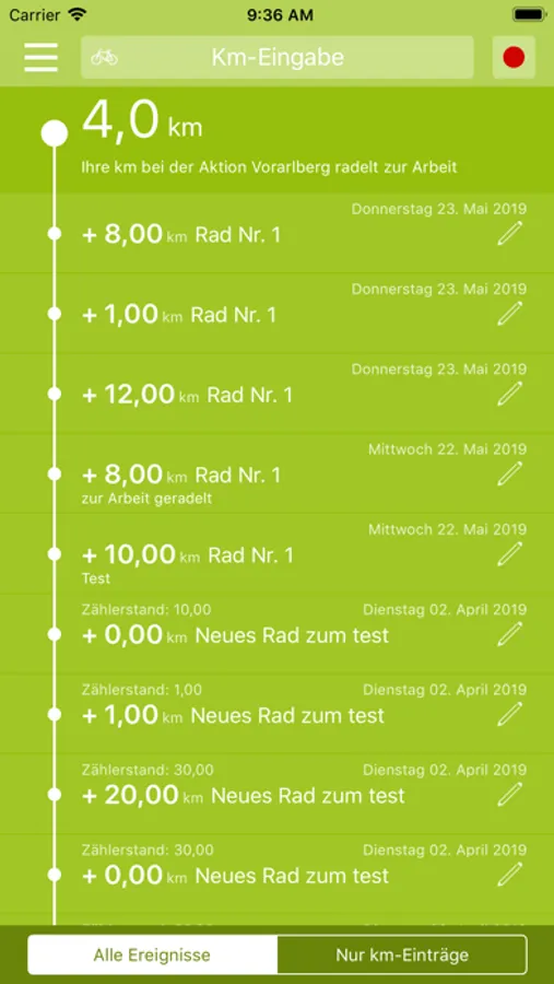 Erfassung der im Rahmen von „Tirol radelt – Tiroler Fahrradwettbewerb“ geradelten Kilometer. Gibt Einblick in die persönliche Statistik der geradelten Distanz, bietet die Möglichkeit, geradelte Entfernungen und Höhenmeter von einzelnen Strecken "mitzutracken", sich persönliche Radler-Ziele zu setzen oder mit Freunden zu vergleichen, ein Teamrennen durchzuführen, die Wetterprognose abzurufen und Dienstfahrten mit dem Fahrrad einfach zu erfassen.