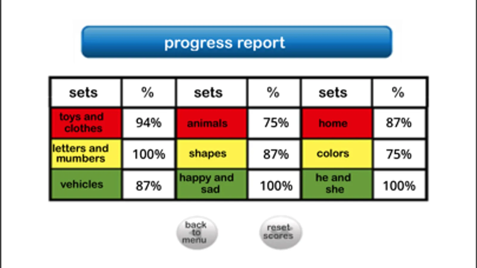 Additionally, you are able to track your child's gains through progress reports that average the last 3 performances of each learning enhancement activity.