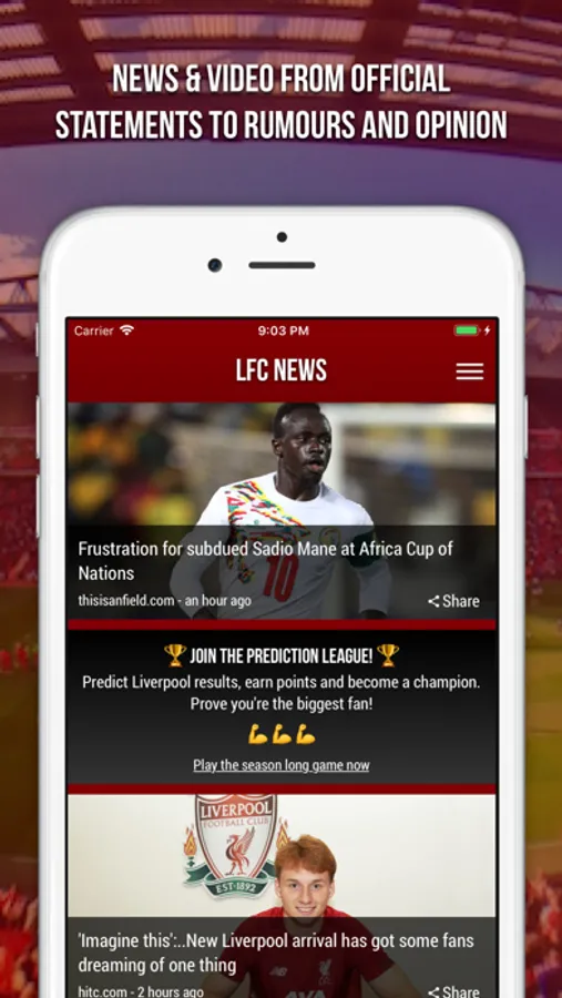 √ Join the prediction league and play the season long game! Compete against other Liverpool fans by predicting results, earning points and proving you are the biggest fan.