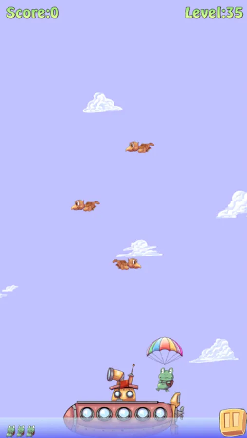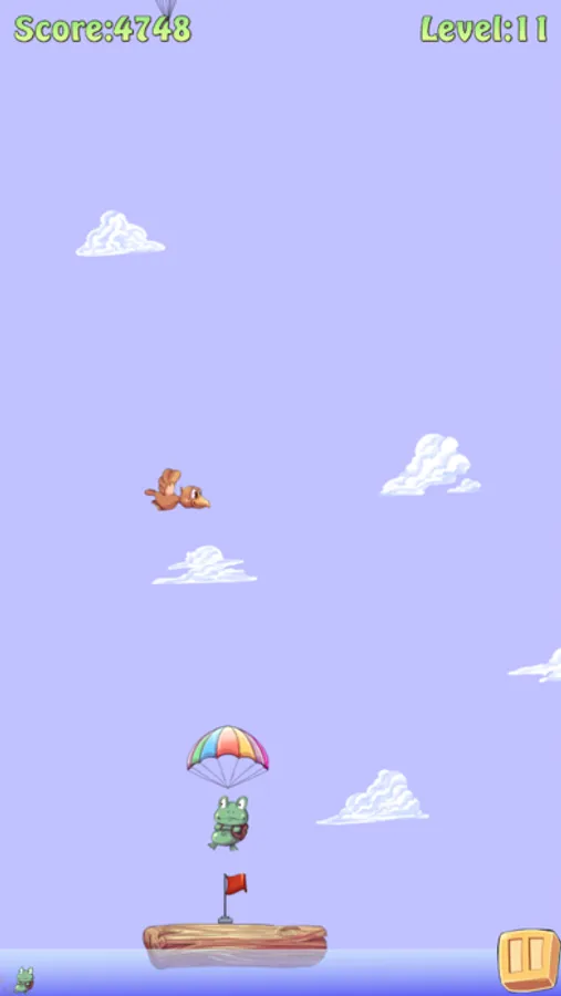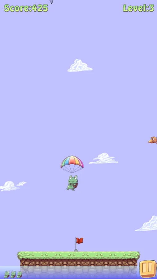 Our little Frog wants to land smoothly on the island, the raft or the submarine and as near as possible to the flag.