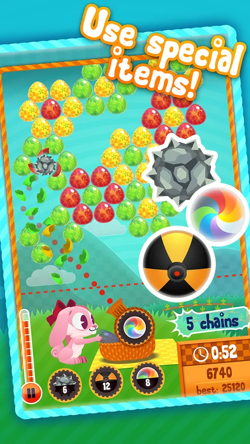 With top notch illustrations and performance, Bunny Bubble Shooter is the definitive bubble puzzle adventure game for you.