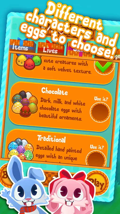 Have the easter bunnies Bobble and Bonnie help you aim, shoot and pop matching easter eggs to score massive points and compete with your friends for the highest scores.