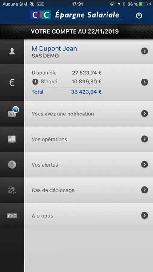 Depuis votre iPhone , accédez aux fonctionnalités de l’épargne salariale au creux de la main. Les fonctionnalités les plus utilisées et importantes sont intégrées dans l’application dédiée en toute confidentialité et simplicité (consultation des avoirs par plan, versements, arbitrages, déblocages...).