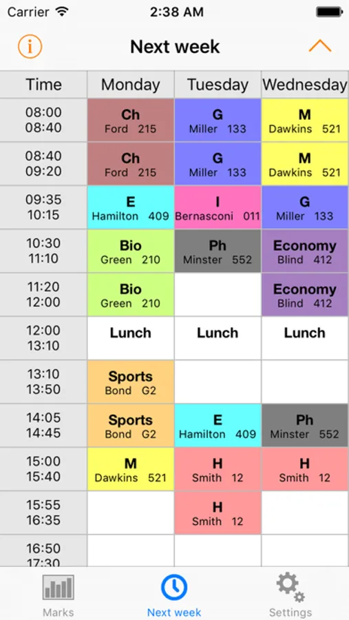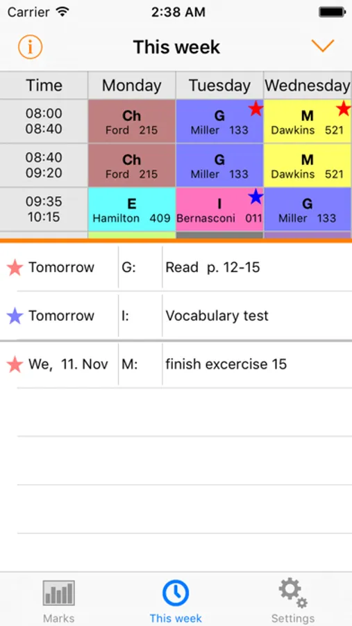 In the second tab you can arrange your own timetable. Due to the fact that the agenda is directly integrated into the timetable you can see immediately if for a particular lesson an exam is announced or homework has to be done.