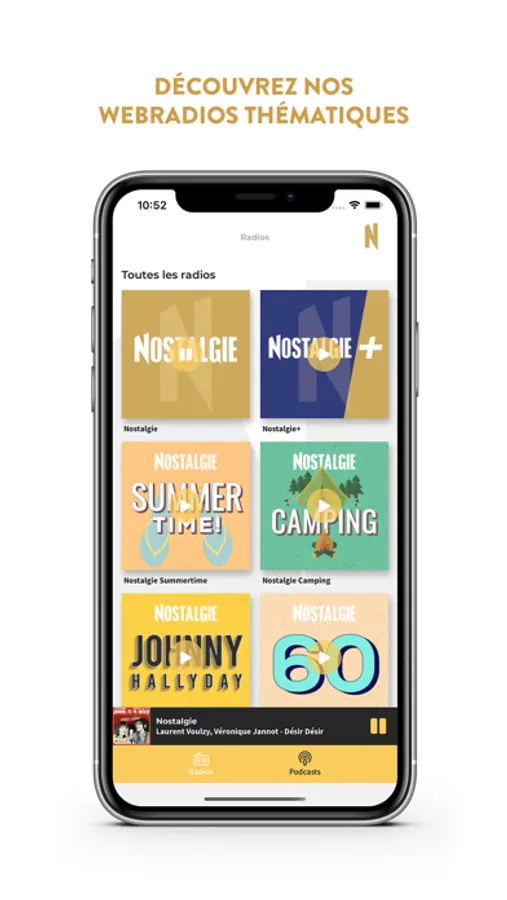 Choisissez parmi plus de 20 radios thématiques et passez de l'une à l'autre en un seul clic. Que vous aimiez les années 60, 70, 80, 90, la chanson française ou encore le rock ou le jazz, il y en a pour tous les goûts !