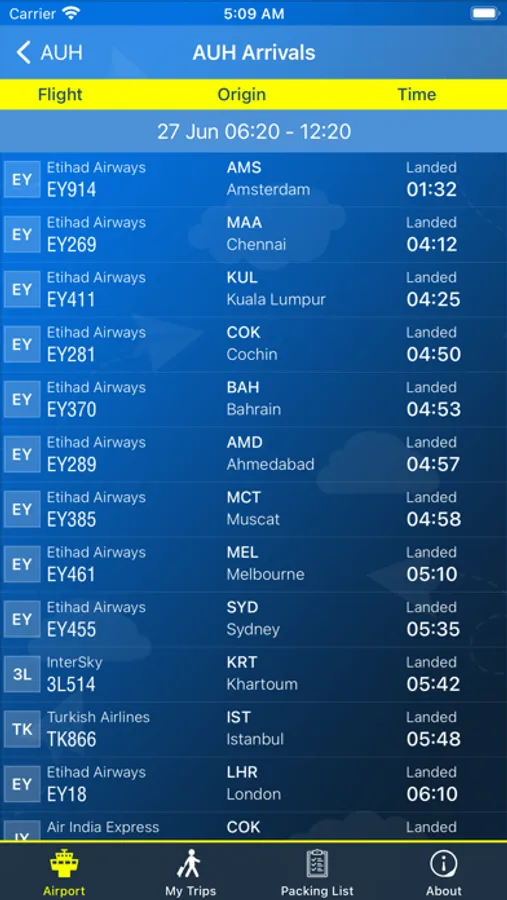 This app provides complete information for Abu Dhabi Airport.