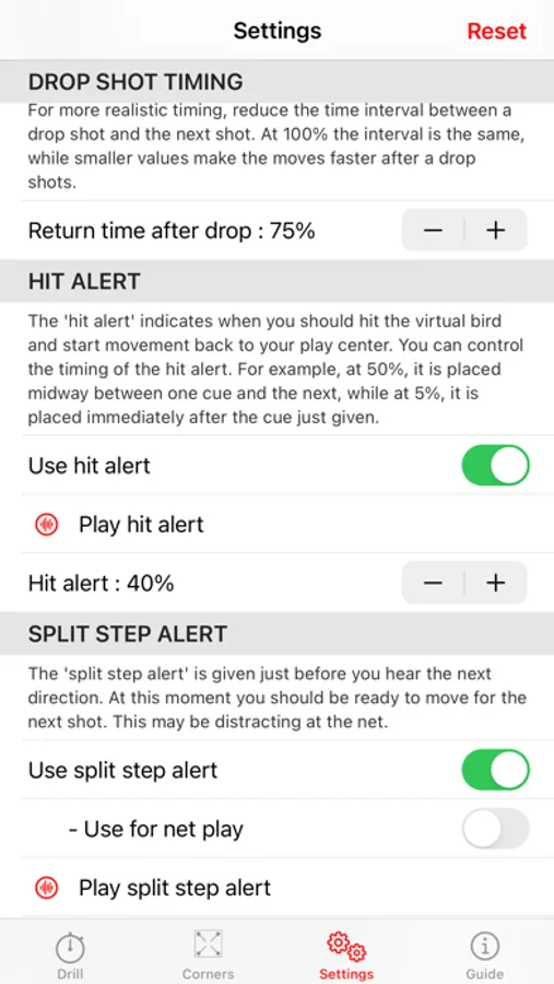 • Specify timing for a split-step alert to help guide your readiness for the next shot.