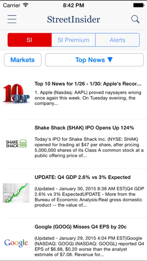 StreetInsider.com's free app puts breaking, actionable stock market news at your fingertips. Get instant access to Wall Street's top analysts and thinkers. Set up custom alerts to track news on your stocks (i.e. AAPL) and other key market areas (i.e. Mergers). Take the experience to the next level with SI Premium.