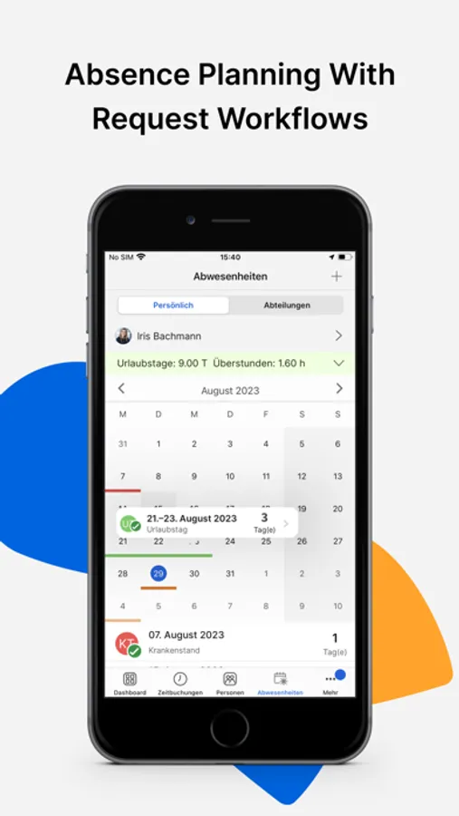 Efficiently manage all holidays and absences. TimeTac automatically calculates annual leave and holiday entitlement for all employees based on your settings. Thanks to numerous evaluation options, you can always keep an overview of an employee's work log. Requests and confirmation workflows could also be implemented. Reduce your administrative effort and save valuable time!