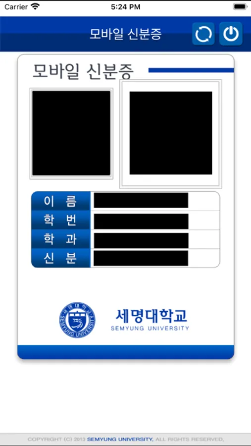 * 세명대학교 민송도서관홈페이지에서 모바일학생증을 신청 후 사용할 수 있습니다.