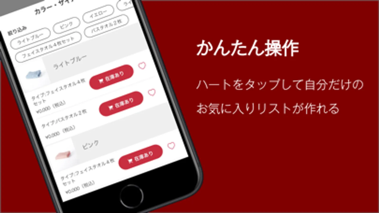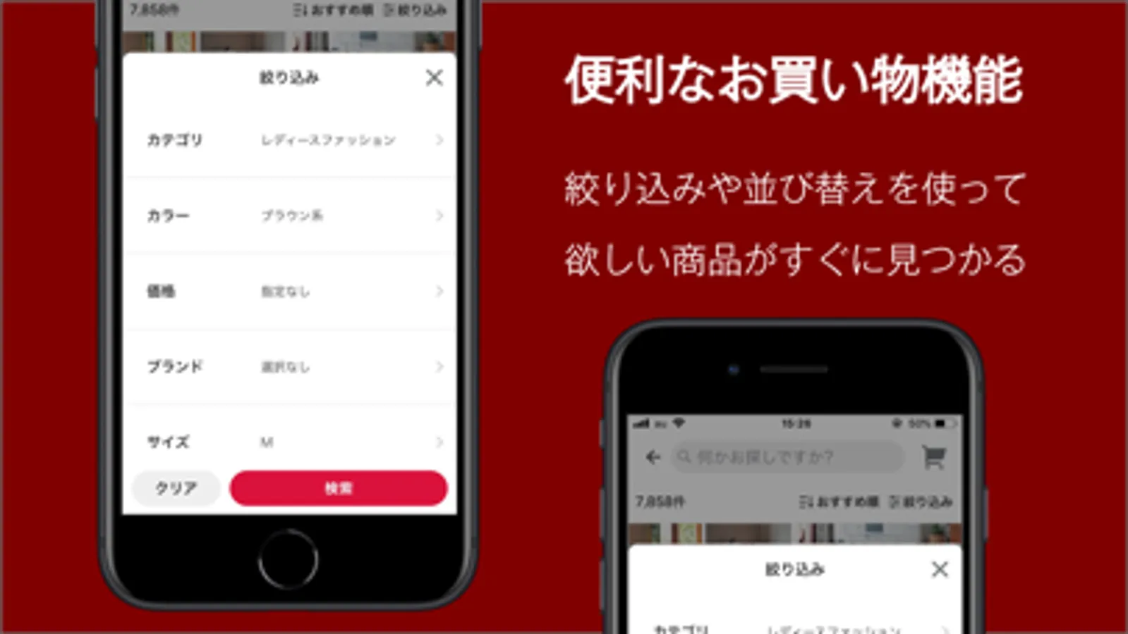 ファッション・コスメ・ブランド・インテリア・ディズニーグッズなどの商品がアプリで検索、お気に入り登録、カート投入することができます。