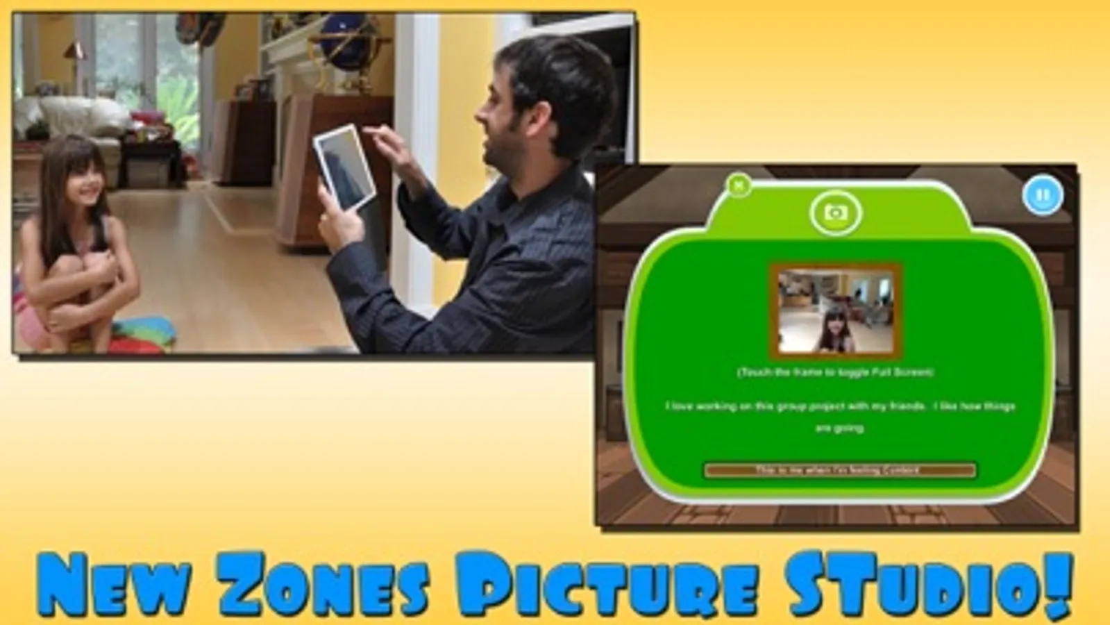 Introducing the Zones Picture Studio! Team up and learn emotional awareness by taking pictures with your device. Scenarios are presented to students providing them the opportunity to reflect on how the scenario would make their body feel. Thinking about the cues from their body and brain, students use the app to capture what the feeling looks like on them, gaining insights on the physiological cues that accompany emotions. All pictures will be taken with your device's camera, stored on your device, and displayed directly in the app for easy review. Students can even create their own scenarios. The Zones Picture Studio offers hours upon hours of fun and education.