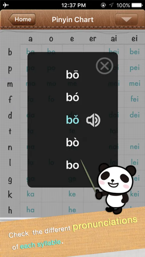 · You can hear the pronunciation by pressing the pinyin you want to hear.