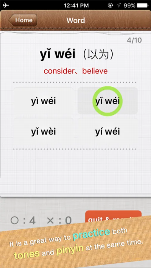 While solving questions in the form of quizzes, your ear will gradually be trained and you could easily start recognizing Chinese pronunciation.