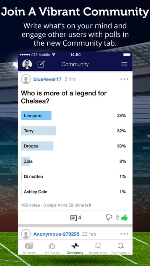 * A community of Chelsea fans! Post stories or polls, comment on stories, tag articles and earn reputation points and badges!
