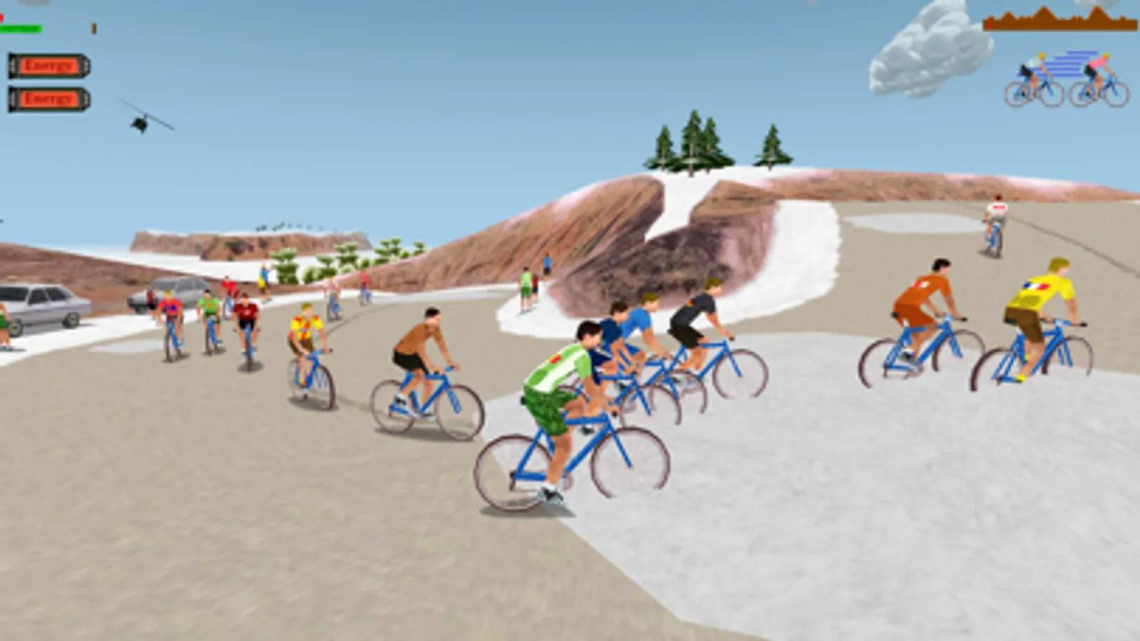 Climb impressive mountains dodging obstacles, without losing wheel of main group.