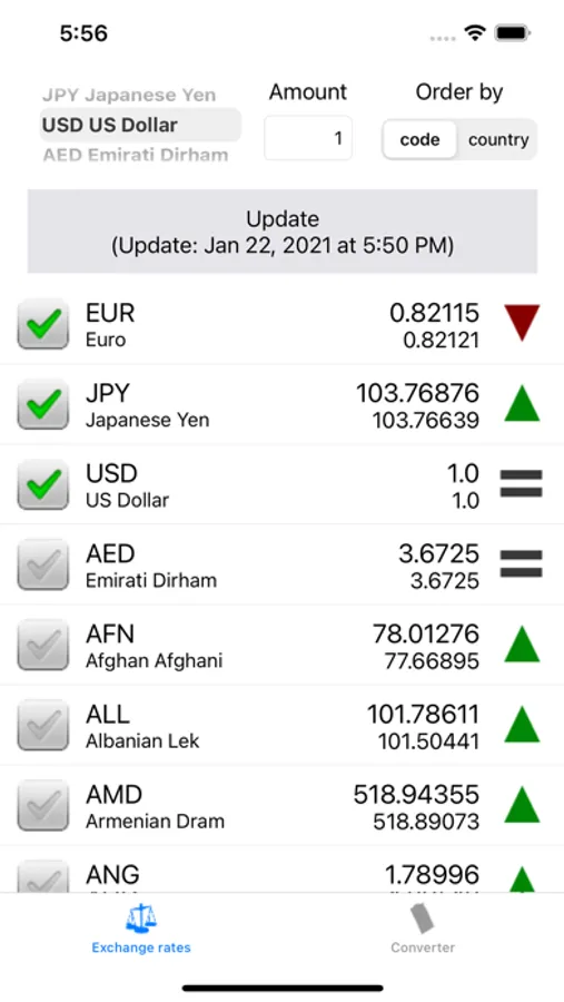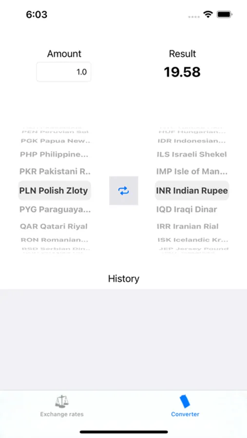 - Saving the last currency pair and changing the direction of exchange with one touch.
