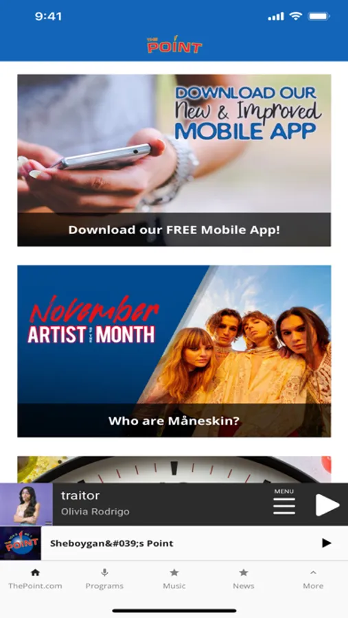 Listen to 104.5 & 96.1 Sheboygan's Point (WXER-FM Radio) anywhere with our free app! Hear Ben Olson, Belky, Jeff, and Otis Day plus all your favorite hit music anywhere you can take your phone or mobile device!