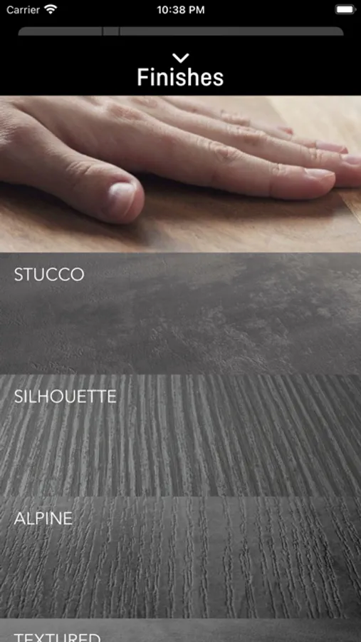 Allows the user to customize static images (blueprint) of kitchen, built-in cupboard, shop fitting by applying the décor which is over-layed onto the static image, this brings in an interactive playful element to the app as well and functionally assisting them in choosing the preferred décor. The user must scroll, touch and drag on one of the thumbnails to bring the décors to life.