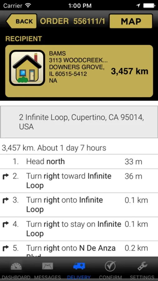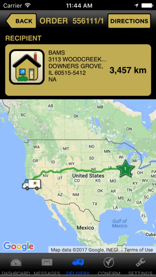 • Map and Directions: View a map of the current truck and recipient locations, plus get turn-by-turn directions.