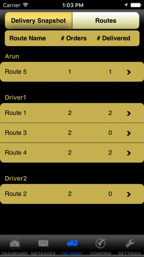 • Delivery Routes: See routes, stops, and orders and mark them delivered.