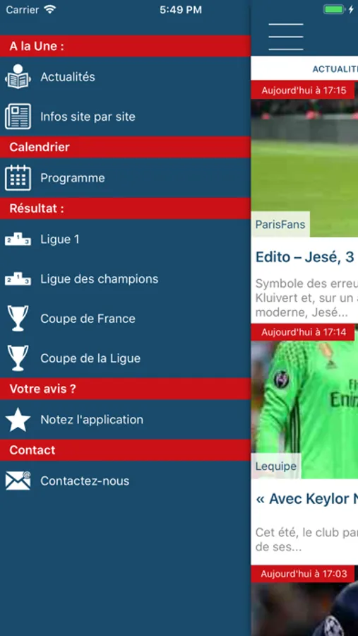 Supporter du PSG, Sur L'application "Paris Foot Actu"(Application non officiel) vous trouverez: