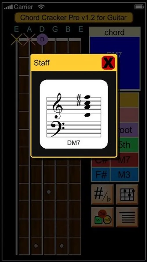 Simply the best assistant for understanding, exploring, and composing on guitar. Place dots on the neck to instantly identify the notes, interpret the chords, and show the relationships between the notes. Complete chord library with 70 different chord types. Listen to chords as you explore. View chords on a musical staff, chord diagram, or tab. Works for any tuning! Easy to use and explore.