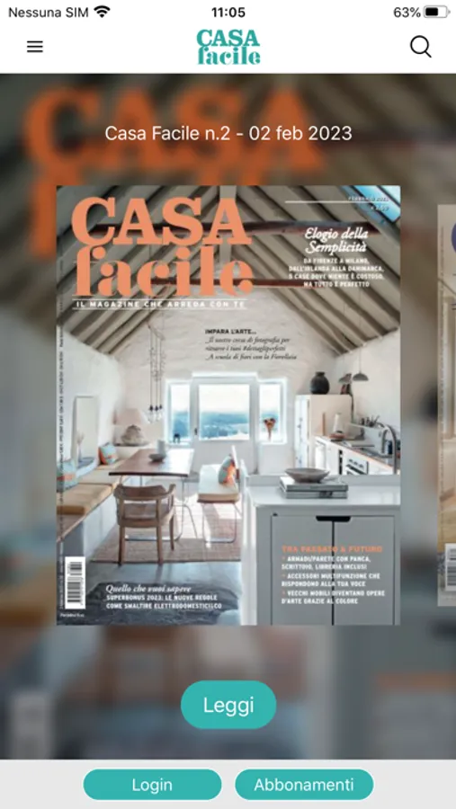 • Se hai già un abbonamento attivo a CasaFacile, potrai leggere la rivista anche su questa App! Utilizza il pulsante “Login” posto nel menu dell'applicazione, e seleziona la tua tipologia di abbonamento. Inserisci username e password (o codice cliente e provincia nel caso di abbonamenti cartacei) e porta sempre con te la tua rivista preferita.