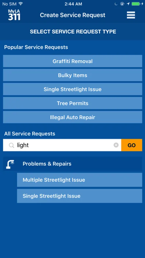 • The 'Create New Service Request’ feature allows you to quickly and easily request the City’s most popular services, including graffiti removal, pothole repair, and bulky-item pickup.