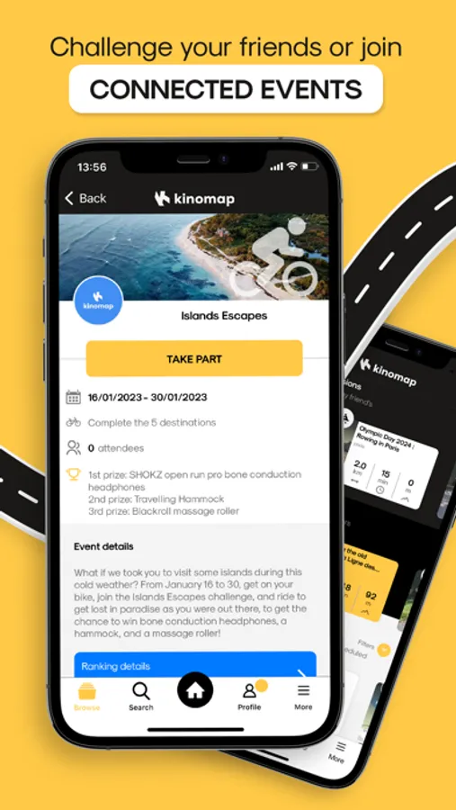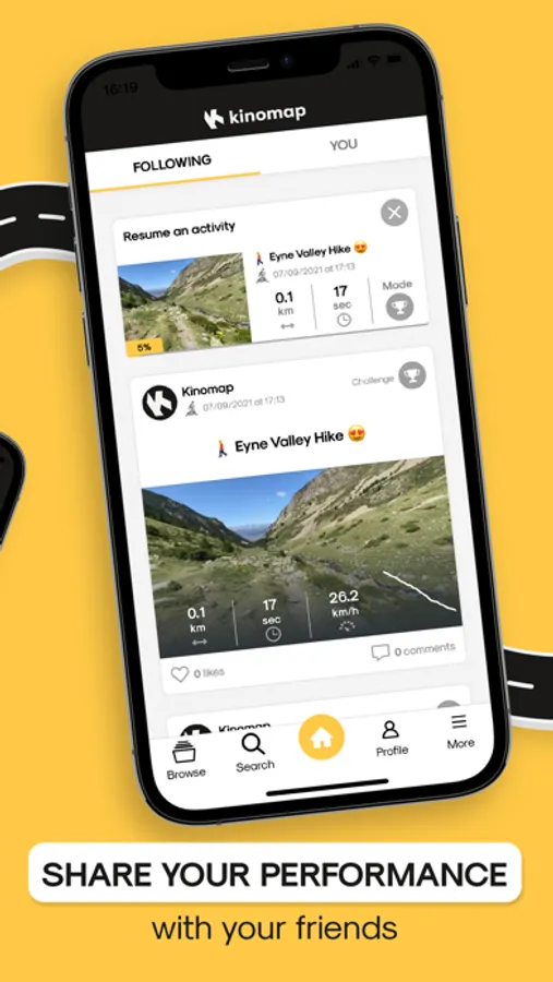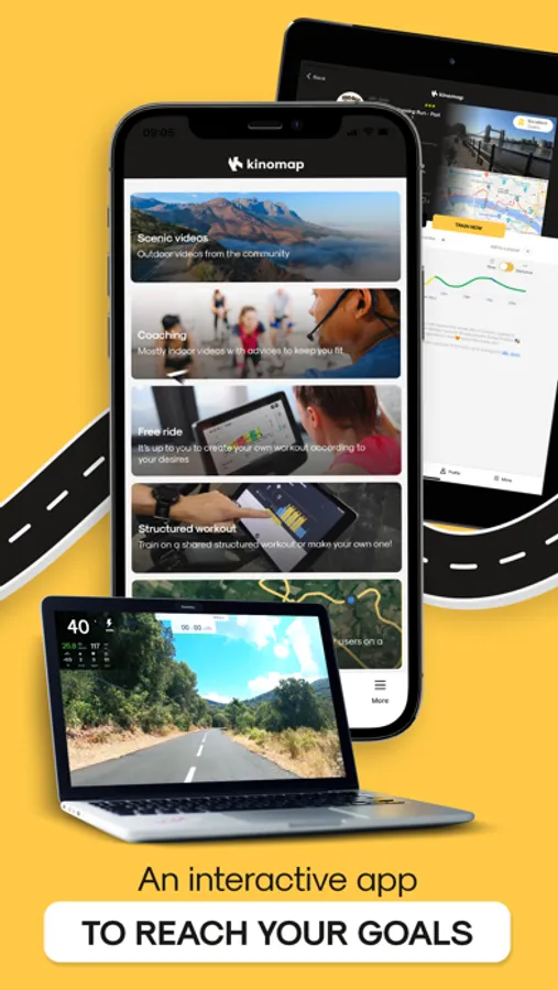 - Synchronize your Kinomap activities with our app partners like Strava or adidas Running.