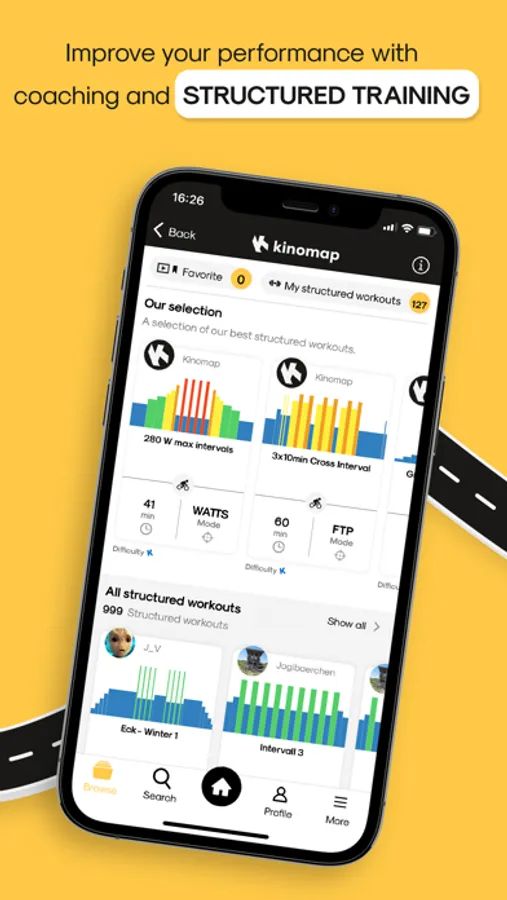 Reach your goals by customizing your own sessions or by choosing the sessions suggested by Kinomap and the community.