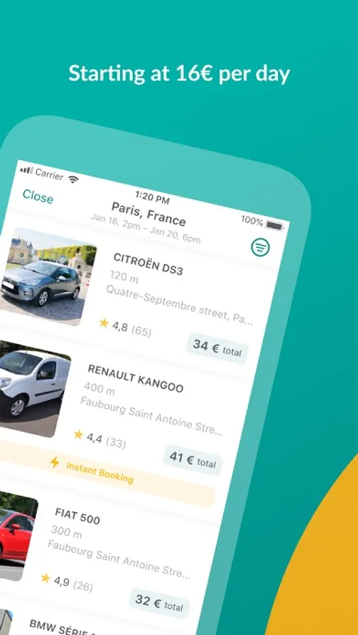 All vehicles rented via OuiCar are insured without additional charges by our partner AXA. The rentals not only beneficiate from a multirisk insurance but also from a 24/7 assistance. OuiCar is an alternative to carpooling in case you want to use a car on a regular basis or just for a little trip. The app allows you to find a vehicle easily near you, to follow up your requests, increase reactivity thanks to notifications, and contact the owner directly through the chat.