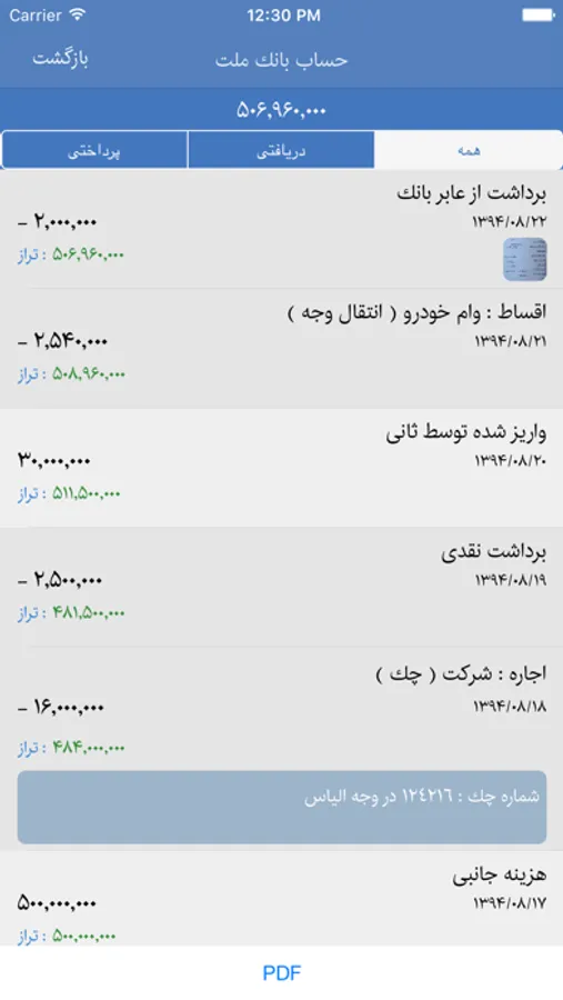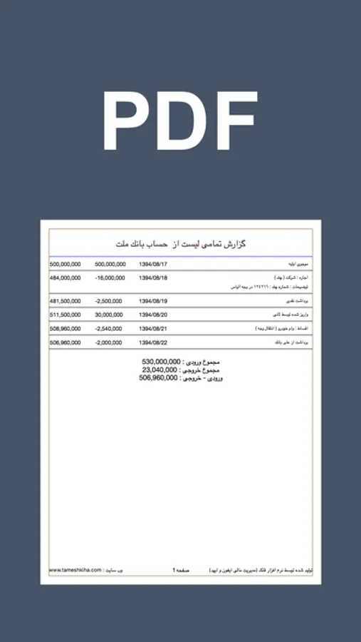 + ایجاد فایل پی دی اف از هر گزارش ایجاد شده و یا تمامی لیست تراکنش های یک قلک