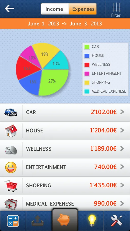 A recurring transaction allows you to enter once all the expenses/revenues that are constantly repeated over time (salary, mortgage, etc..), As desired by selecting the period of recurrence.