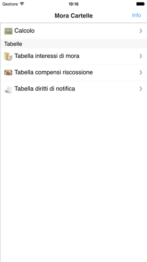 L'applicazione contiene, inoltre, le tabelle storiche delle percentuali annue degli interessi di mora, dei compensi di riscossione e dei diritti di notifica.