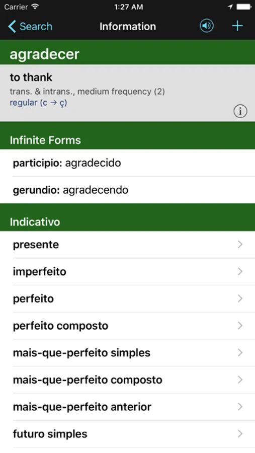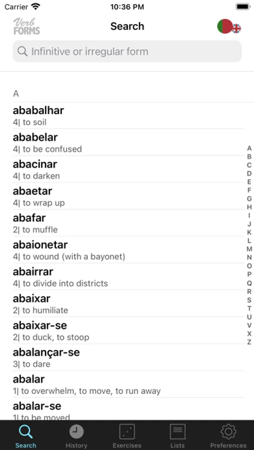 • Over 4500 Portuguese verbs with translations in English, French, Spanish and German.