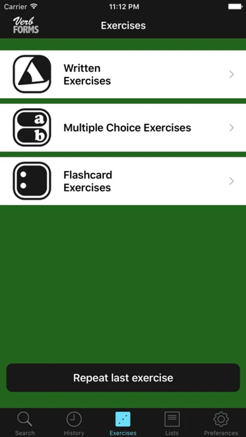 • Configurable multiple choice, flashcard and written exercises for conjugation and vocabulary.