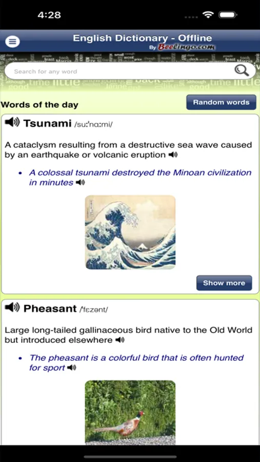 Discover the world of English with the powerful offline dictionary! Looking for a trusted companion for your English learning journey? Look no further because here it is: English Dictionary - Offline by Beelingo.com, a trusted app that has been serving users since 2011.
