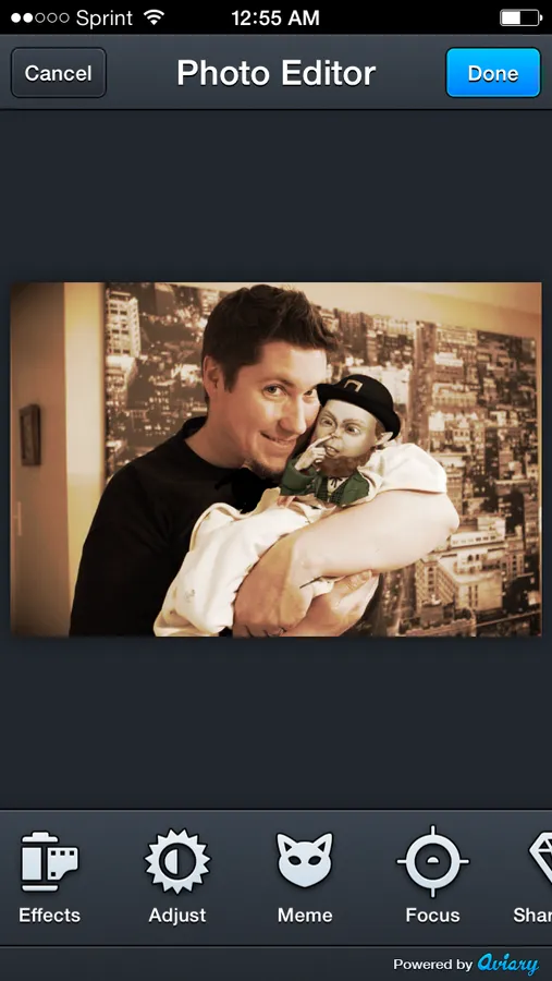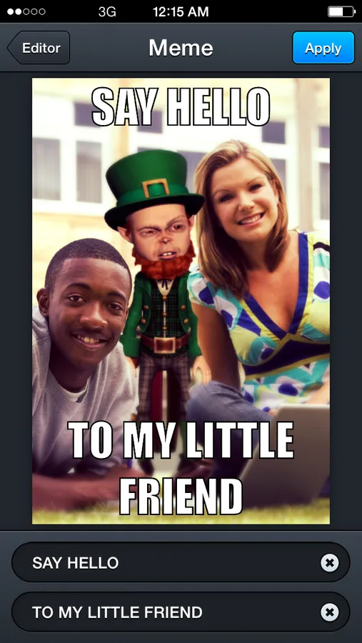 With Leprecam, you can add a Leprechaun to any photo! Simply take a photo or use an existing one, add one of our 8 Leprechauns, then edit the added them to fit seamlessly into your picture. Process the photo with cool effects or make a Meme, then share your lucky Irish creation via Facebook, Twitter, and email!