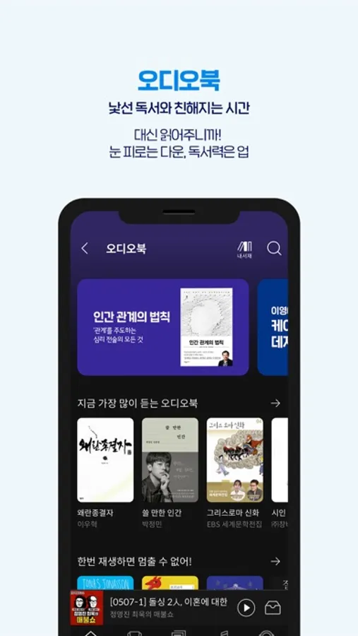작가 그리고 전문 성우, 연예인이 직접 읽어주는 오디오북, 그리고 경제, 역사 등 다양한 주제를 다루는 강연까지