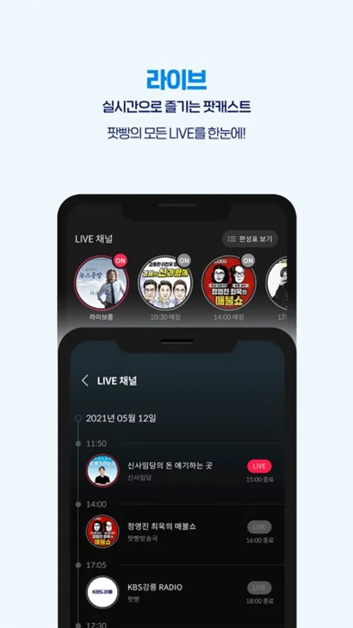 - KBS, SBS 등 지상파부터 TBS 등의 종편까지 방송국 다시 듣기 콘텐츠