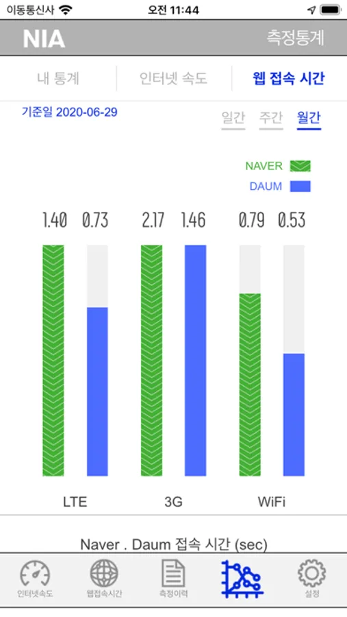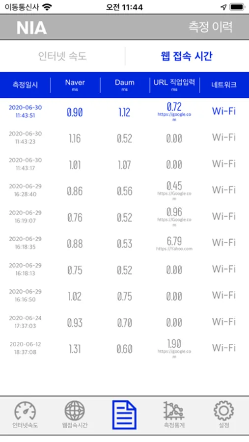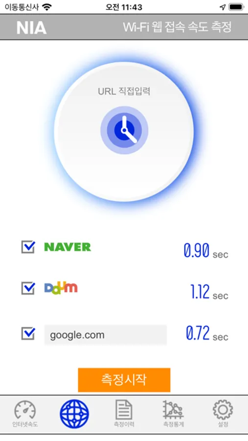 - 웹 접속 속도 측정 시 네이버와 다음 체크박스를 함께 선택해 주셔야 URL 직접 입력도 측정이 가능합니다.