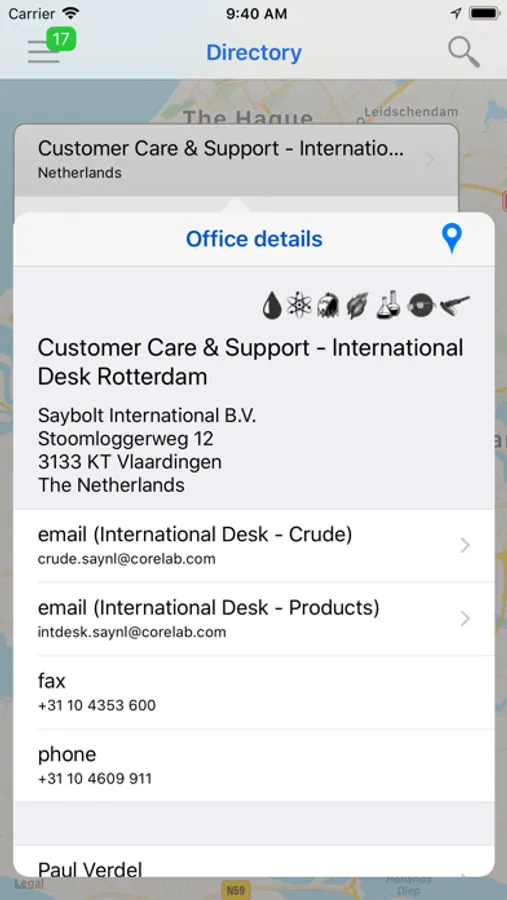 This application allows users to conveniently and quickly explore the worldwide network of Saybolt. Users can find where Saybolt inspection offices and testing laboratories are located, close to or at the spot where their services are needed. They can select Saybolt contact persons in the location of interest and access them directly by phone or by e-mail.