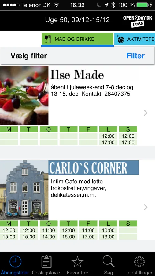 Call the restaurant, get directions to the museum, and use OPEN2DAY.DK's message board to find exciting events near you. If you visit a certain store frequently, add it to your list of favourites with a single tap on the screen. That way you always have quick access to the details you use most often.