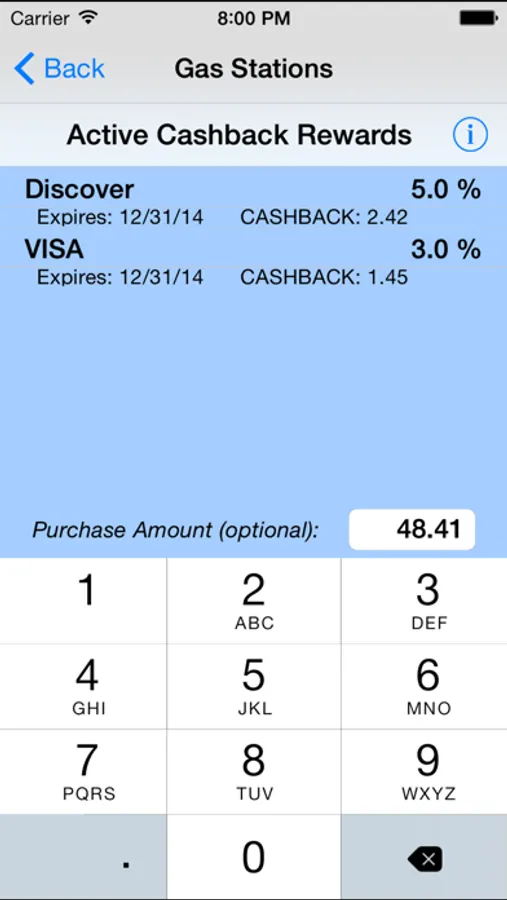 DISCLAIMER: Cashback Maximizer is not meant to encourage run-away use of credit cards, but only in as much as the cards are a convenience and a way to receive cashback rewards. The best policy is to pay off all charges during a billing period at the end of that period. Be sure to check out our other app, 'Spend Control', which aims to help keep spending within appropriate bounds.