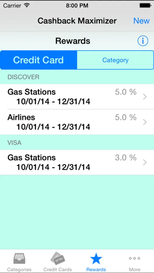 Do you have more than one credit card offering cashback rewards? Do you have a difficult time remembering which card to use under which circumstance? Cashback Maximizer is here to help. Simply enter your credit card names (no numbers required) and then enter information about any current or upcoming rewards. Thereafter, whenever you are preparing to spend, simply select the appropriate category (for example, Department Stores or Restaurants) and Cashback Maximizer will show you which cards currently have active rewards and how much, thus helping you to get the most from your credit card rewards.