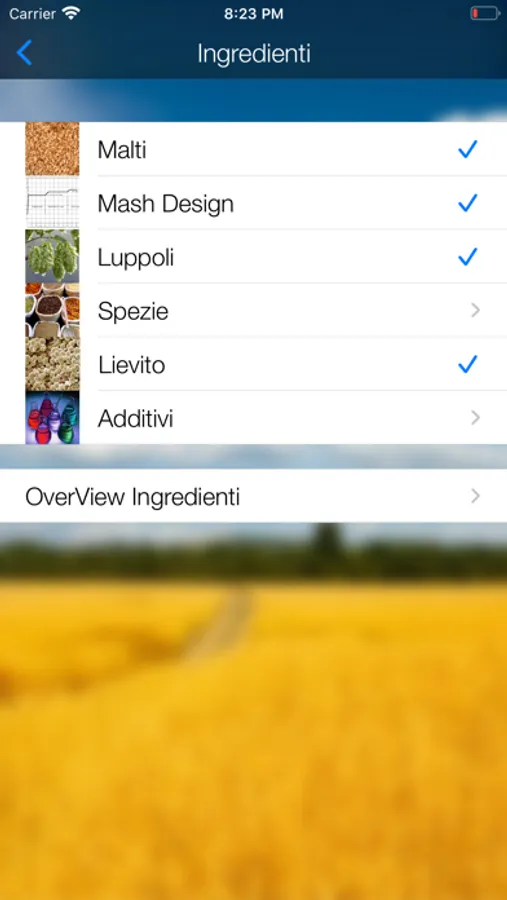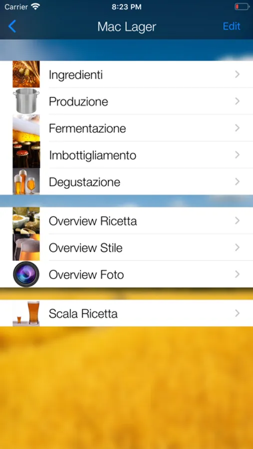 In one screen you can view all the significant data of your recipe, all the ingredients listed and all notes divided per phase. You can also email the complete record of your recipe.
