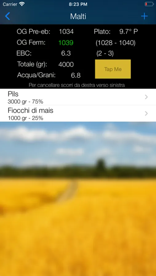 - Filtering: the app provides a stime of the volume of wort remained in grains according to the recipe parameters