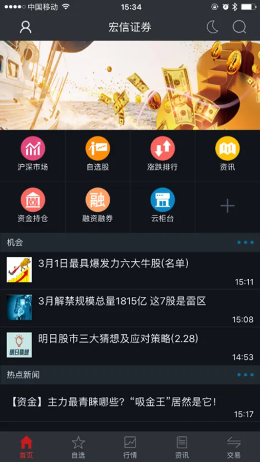 资讯研究:提供强大的资讯内容,囊括财经热点新闻、行业动态、个股机会、新股资讯、数据掘金、港股、美股、基金、理财等全面资讯内容。