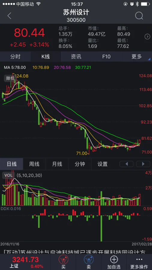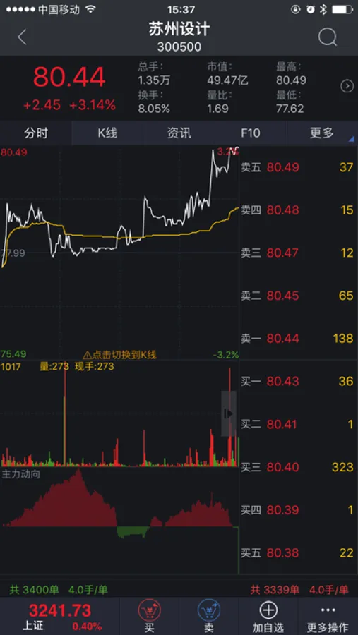 在线交易:兼具普通交易和闪电交易,普通股票包括股票买卖、新股申购、债券回购、银证转账、账号查询、融资融券等交易功能满足您的投资所需;闪电交易,用可在个股分时页快捷下单,节省超过30%的下单时间,交易快人一步。